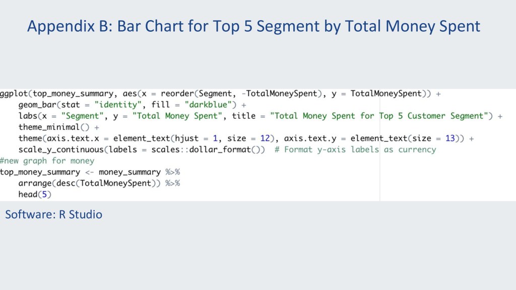 - Bar Chart for Top 5 Segments by Total Money Spent: This chart highlighted segments that contribute most to the revenue.