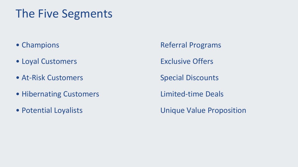 The RFM analysis not only helped in understanding the current customer base but also paved the way for targeted marketing strategies that are cost-effective and tailored to different customer needs. Moving forward, the insights derived from this study will aid in more accurate predictions of future trends and improved resource allocation.