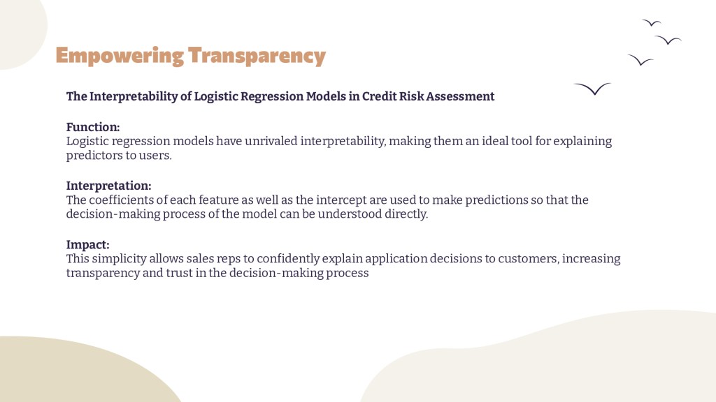 Our selection criteria focused on simplicity and interpretability, essential for stakeholder trust and regulatory compliance: