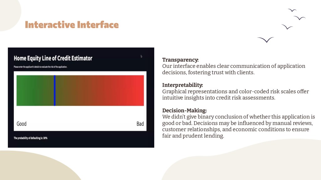 By integrating cutting-edge data analytics and user-friendly interface design, we provide a tool that not only predicts HELOC risks with high accuracy but also empowers financial professionals to make better-informed decisions.